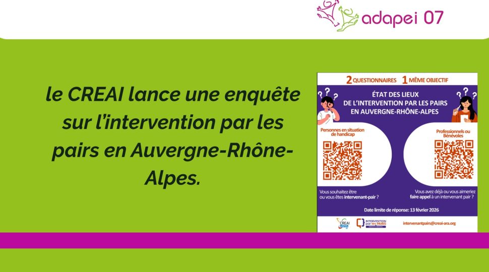 L'Adapei 07 accueille et accompagne tout au long de de la vie, des personnes en situation de handicap, dans ses établissements comme en milieu ordinaire. Elle agit pour que toute personne déficiente intellectuelle, avec ou sans troubles associés, dispose d'une solution d'accueil, d'accompagnement et qu'elle soit partie prenante d'une société inclusive et solidaire.